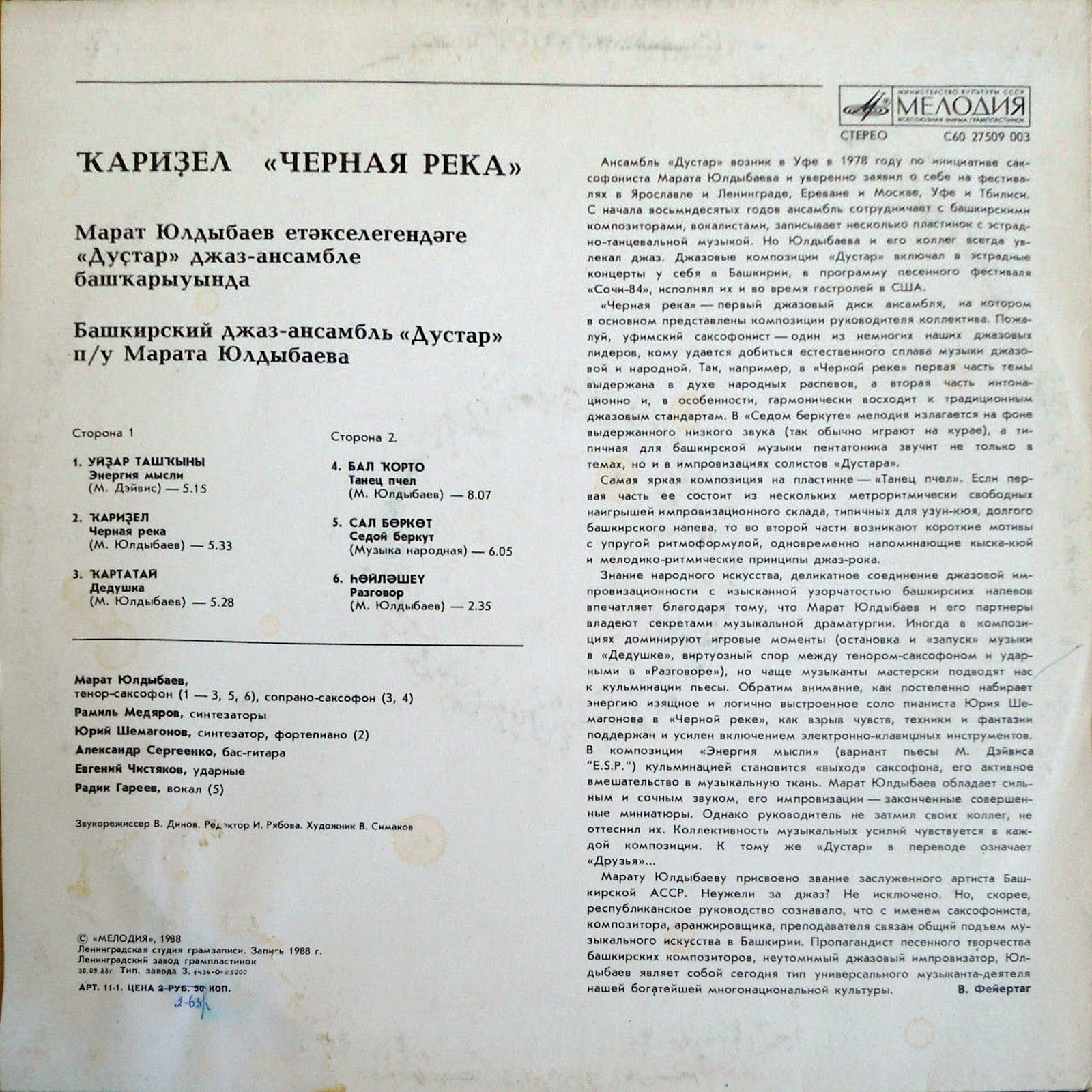 Ансамбль «Дустар» возник в Уфе в 1978 году по инициативе саксофониста Марата Юлдыбаева и уверенно заявил о себе на фестивалях в Ярославле и Ленинграде, Ереване и Москве, Уфе и Тбилиси. С начала восьмидесятых годов ансамбль сотрудничает с башкирскими композиторами, вокалистами, записывает несколько пластинок с эстрадно-танцевальной музыкой. Но Юлдыбаева и его коллег всегда увлекал джаз. Джазовые композиции «Дустар» включал в эстрадные концерты у себя в Башкирии, в программу песенного фестиваля «Сочи-84», исполнял их и во время гастролей в США.
