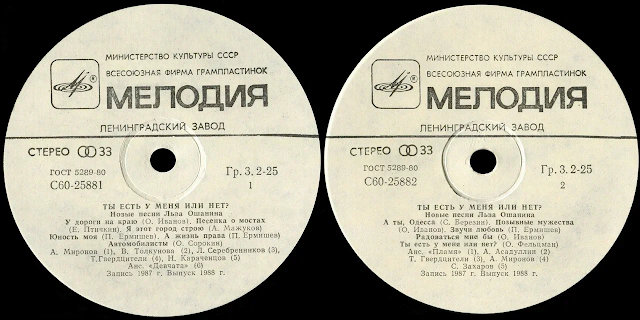 Всесоюзная студия грамзаписи. Записи 1987 г.