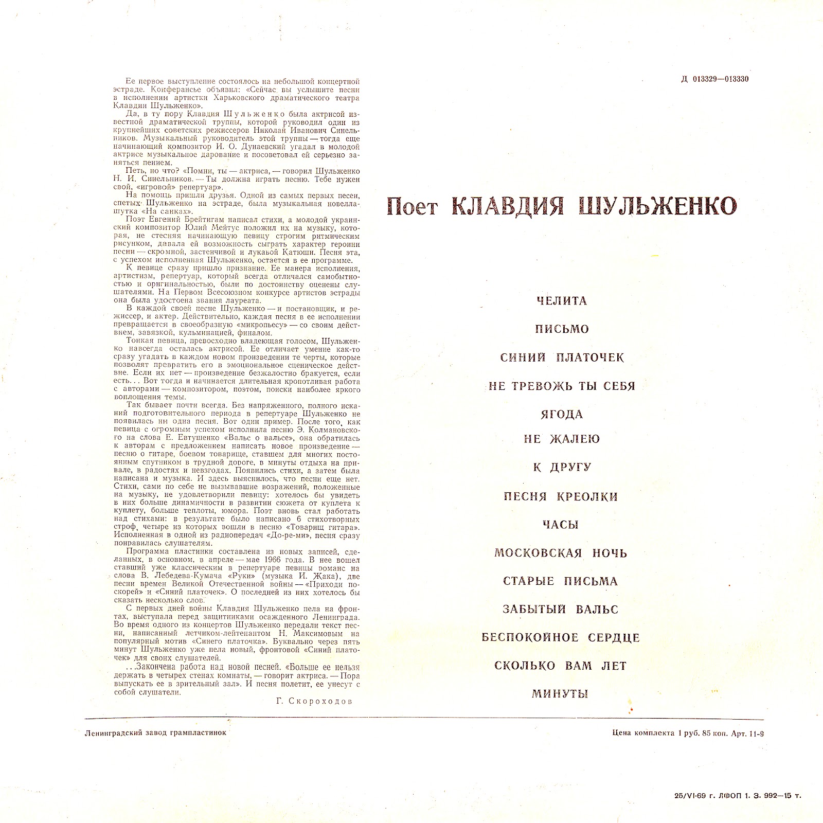 ПОЁТ КЛАВДИЯ ШУЛЬЖЕНКО. LP (ЛЗГ)