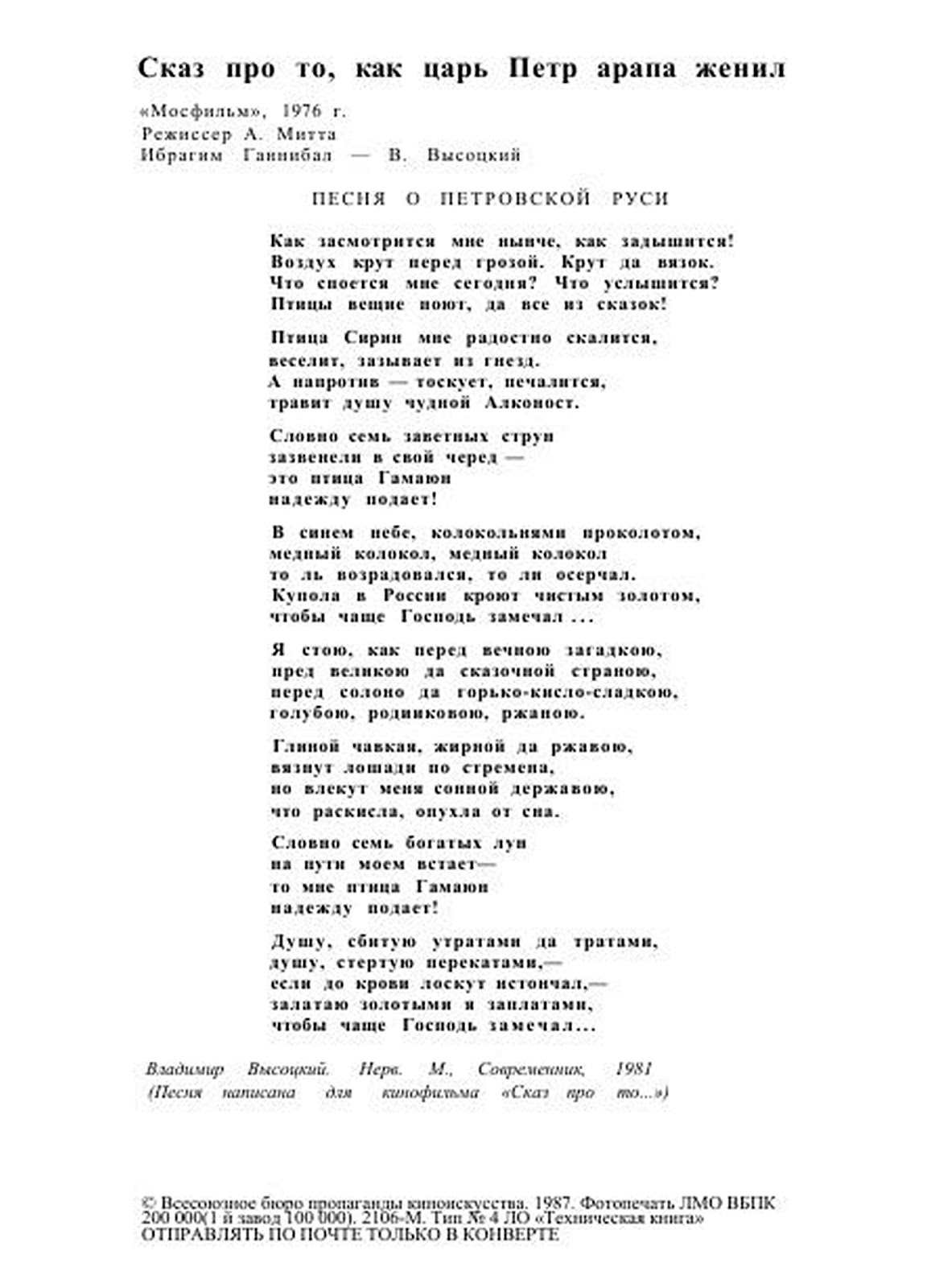«Единственная дорога», «Сказ про то,как царь Петр арапа женил»,